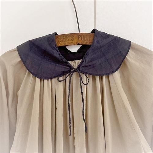 ★シアーチェックネイビーの丸衿ティペット